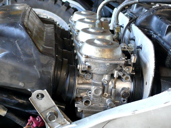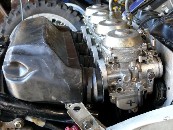 四連キャブレターは取付では、どうしてもエアクリーナーとキャブレターをつないでいるゴムジョイントを押しつぶさなければなりません。