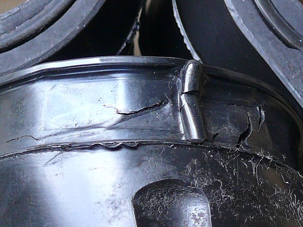 | ・内側コアは混合気の通る部分で硬いパイプとなっています。 外側コアは軟らかい材質でできています。 ・ひび割れは外側にできるので、内側にひび割れは達しません。 だから、外側にひび割れがあっても インシュレーターから二次空気を吸い込むことはありません。 |