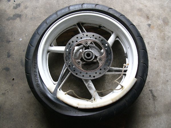 ・タイヤをホイールから外すときは、 裏側から二本のレバーをリムに引っかけて、この二本を同時に押してやればよし。 ・モトクロスタイヤとは固さが全然違います。 |