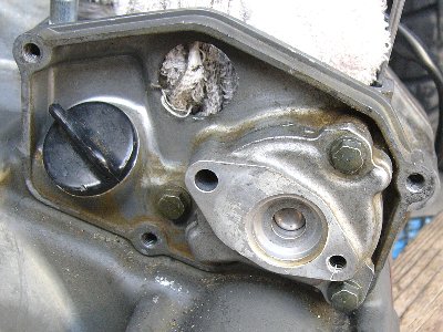 ・これなら、ギヤオイルが飛び散ることはありません。 | ・ボルト穴はそのままにしないで、ボルトを挿入。 ・これ以上、外せないようです。カバーをつけてもよいでしょう。 ・RMX①は余分な部分がカットしてあります。 |