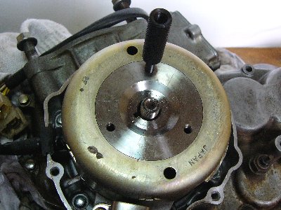 ・ローターは簡単には外れません。 ・クランクケースセパレーターで力任せ。突然ゴロッと外れます。 コツはプーラーを回すレンチが固くなったときに、 プラスチックハンマーでローターの溝下方向から軽くたたくこと。→→→こちら |