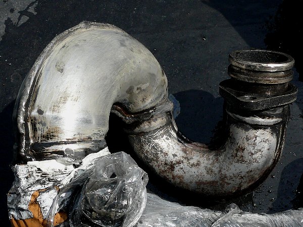 | 剥げている部分が温度が高くなるのでしょう。 | 出口付近と排気ガスが当たる外側カーブの部分が剥げています。 |